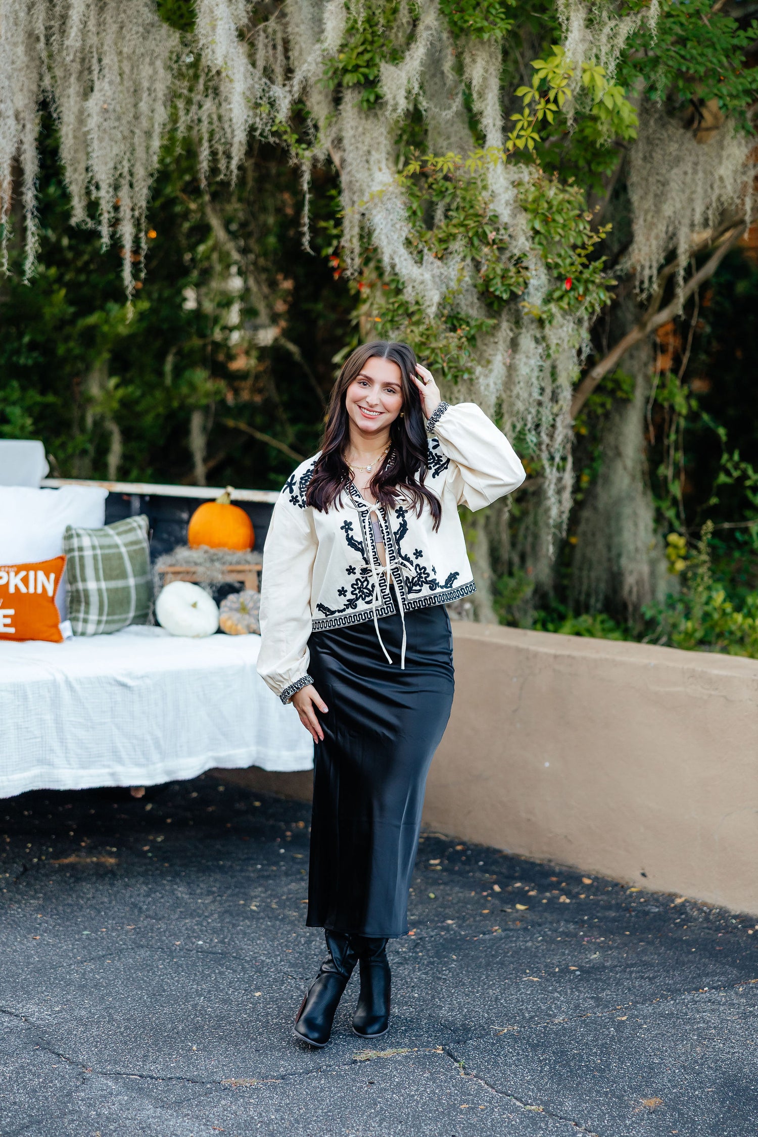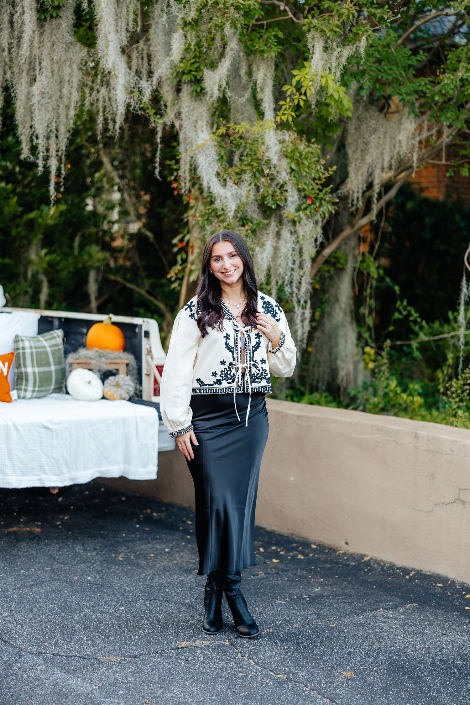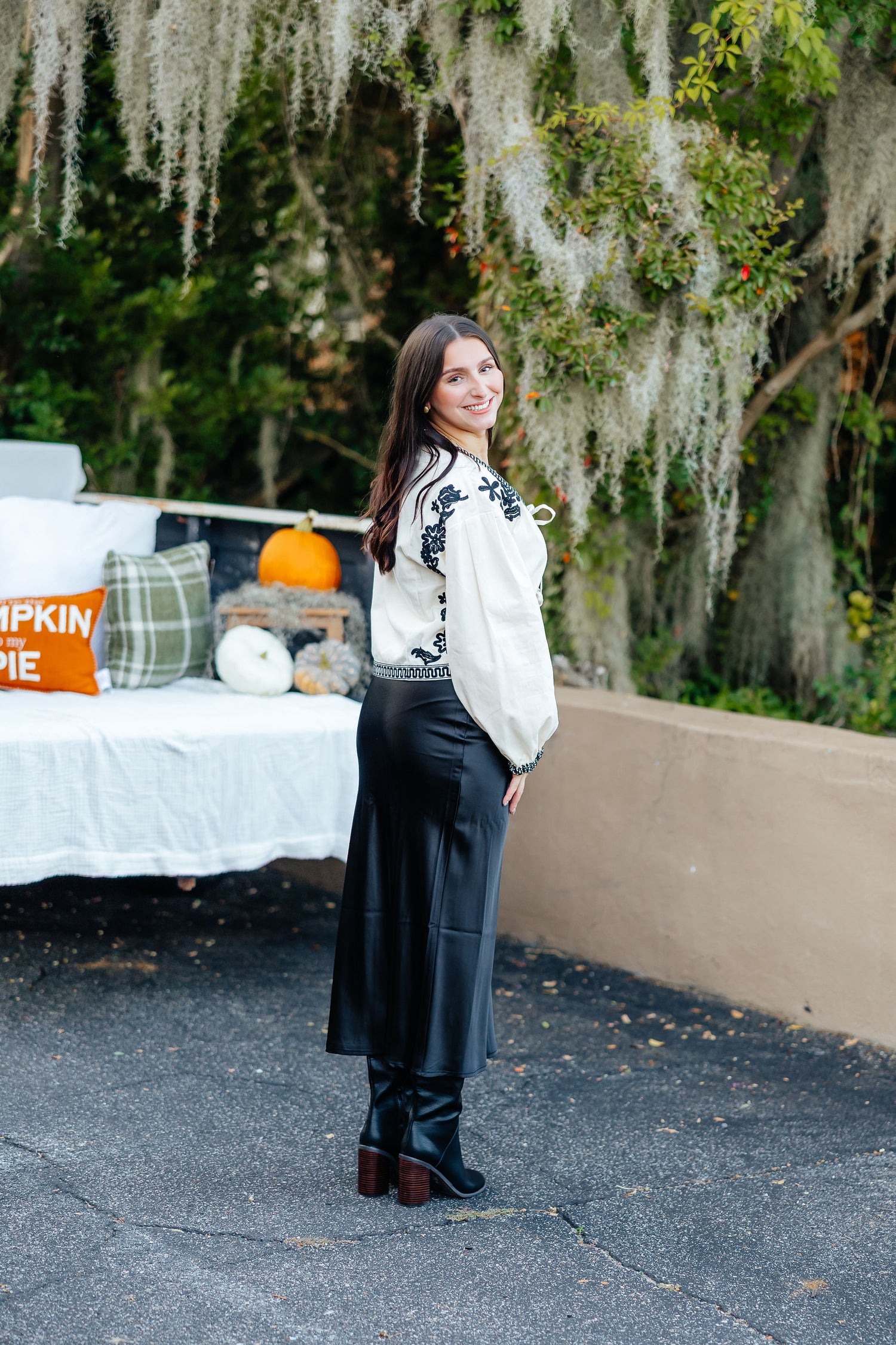 This long satin skirt is both elegant and charming, making it a perfect addition to any wardrobe. With its sleek design and smooth texture, it's sure to elevate any outfit. Bring out your inner fashionista with this cute and versatile piece.
