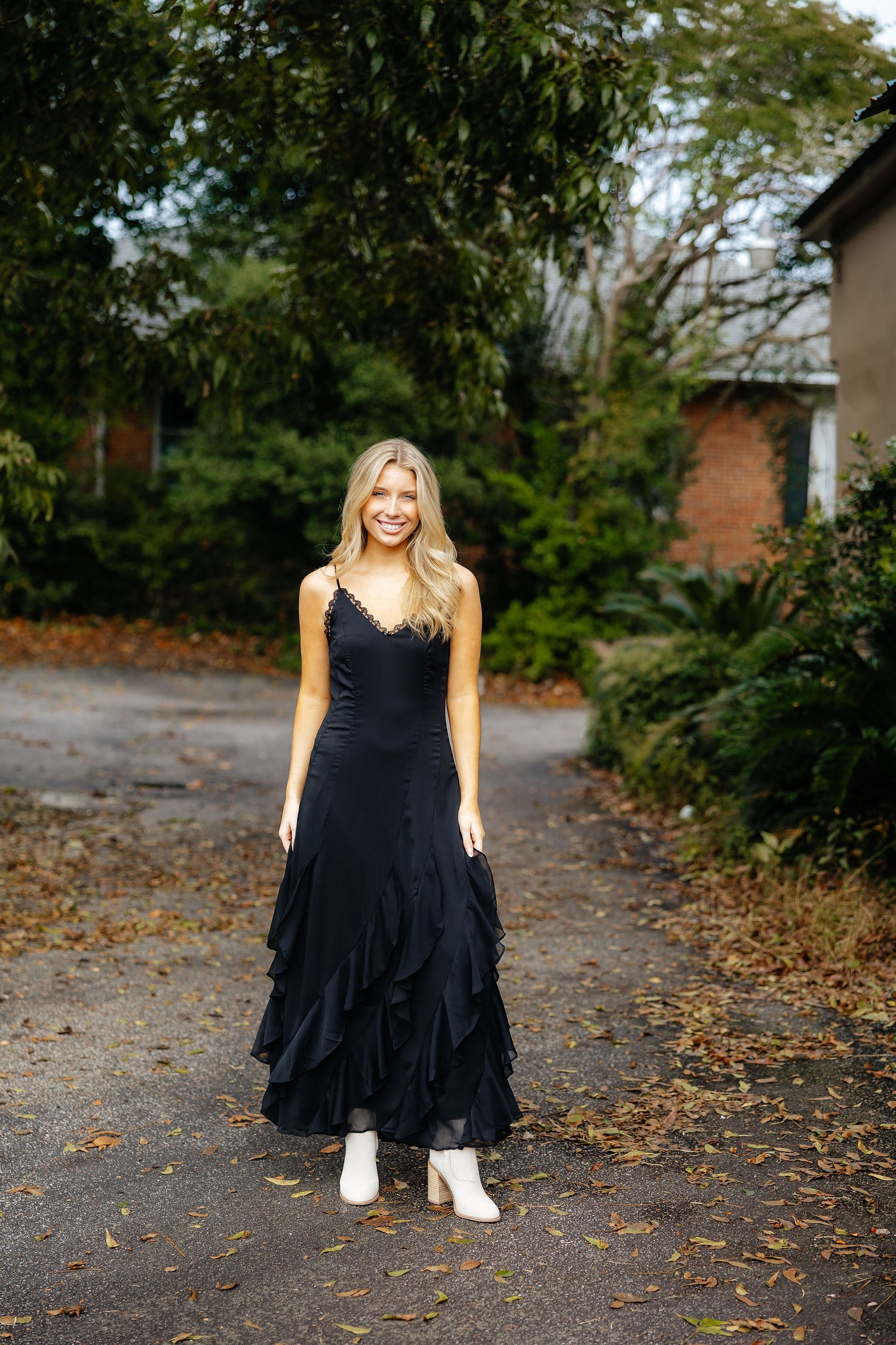 Indulge in timeless elegance with our Amara Dress! Featuring a delicate beige lace design, a flattering v neck, and charming ruffle accents, this dress is perfect for any special occasion. Embrace your feminine side and radiate confidence in this stunning cami dress.