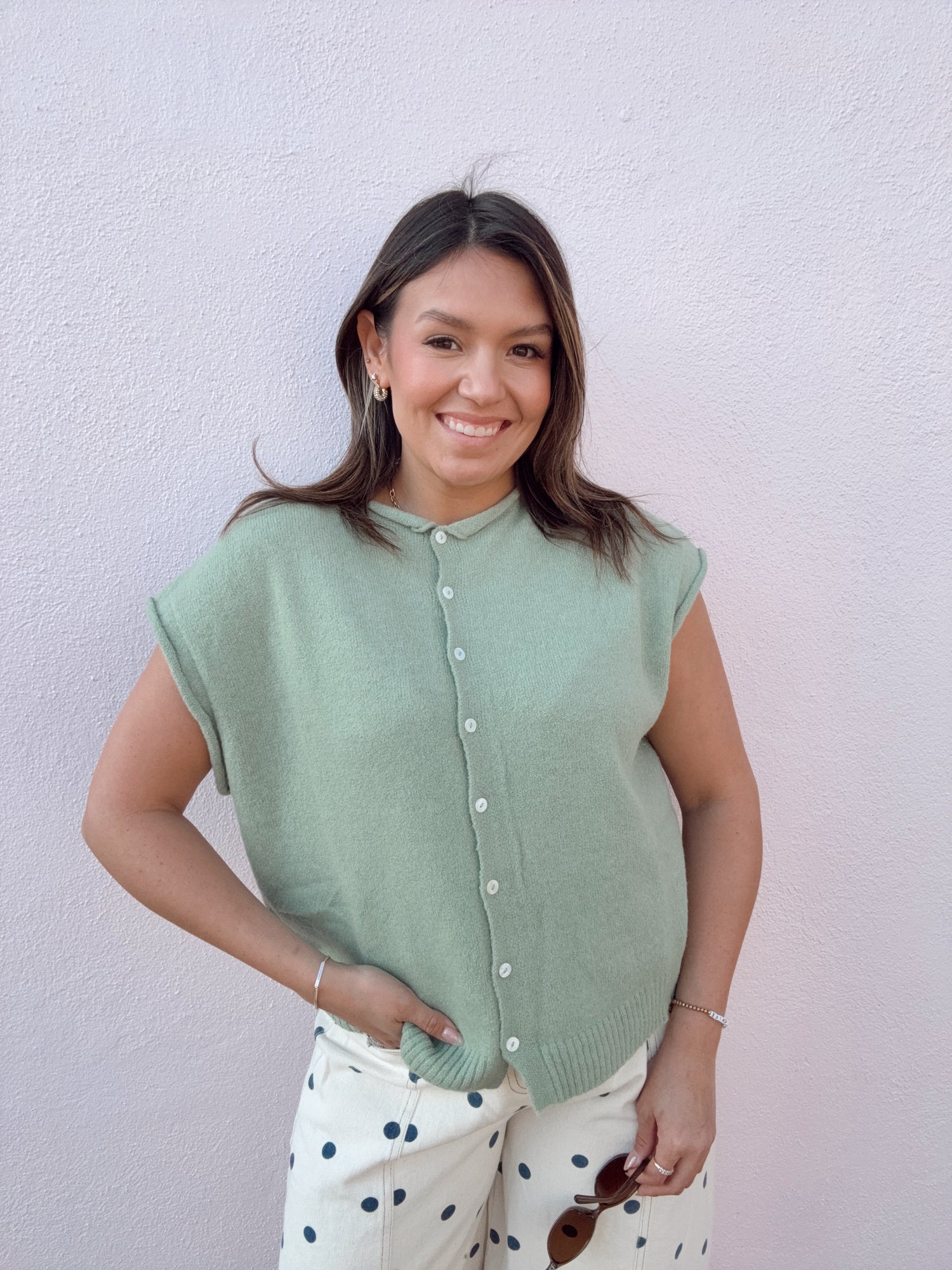 Get stylish and eco-friendly with our Dani top! Made from 45% recycled polyester and 7% wool, this lightweight top is perfect for any occasion. With Matcha green fabric and mother of pearl buttons, this is the perfect chic top to add to your wardrobe! it's a sustainable fashion choice you can feel good about.