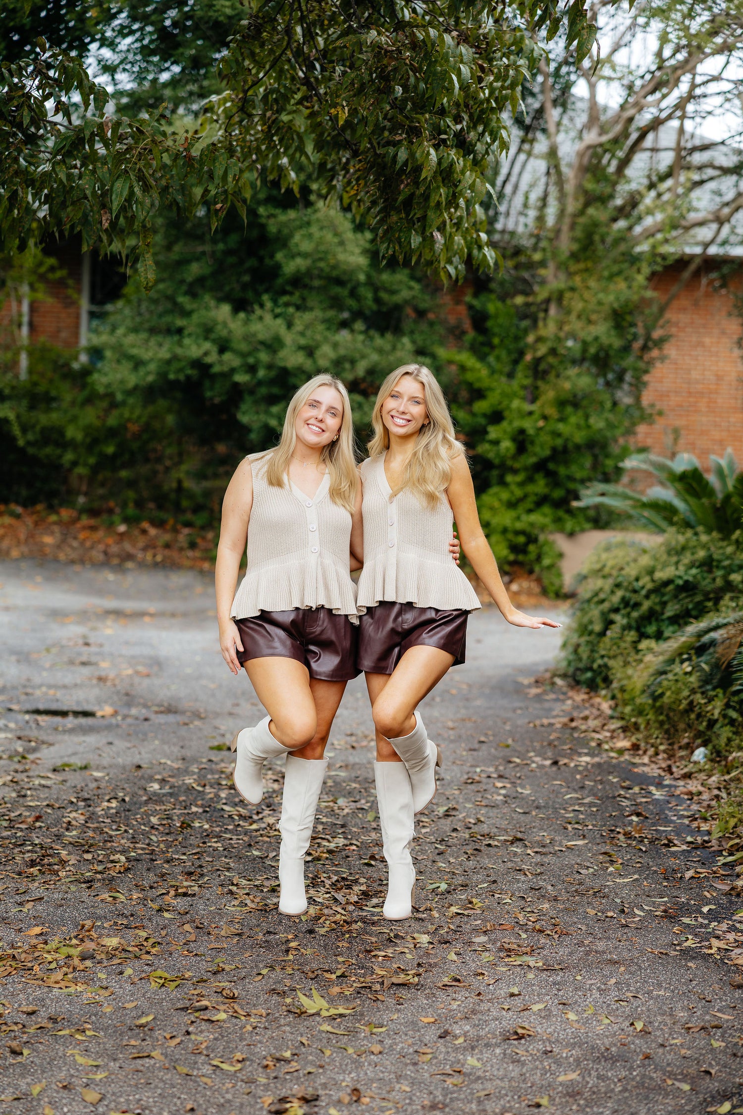Introducing the Flared Leather Short in a rich Dark Oak color. Its pleated detailing creates a flattering fit while the flare look adds a touch of sophistication. Made with high-quality materials, it's the perfect addition to transition your wardrobe to fall. Feel confident and stylish in this must-have piece.