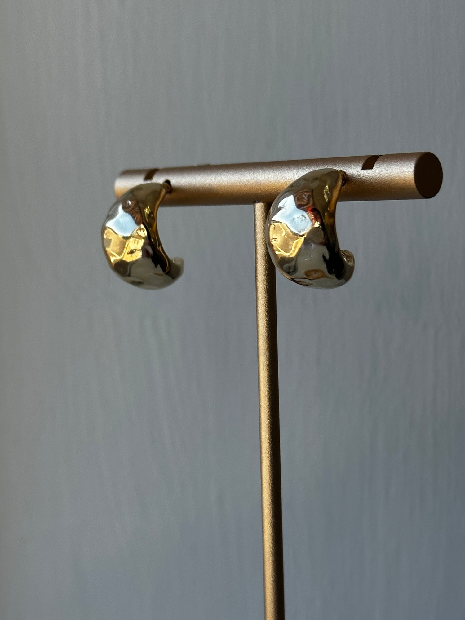 These gold textured hoops feature a small design that adds a touch of elegance to any outfit.