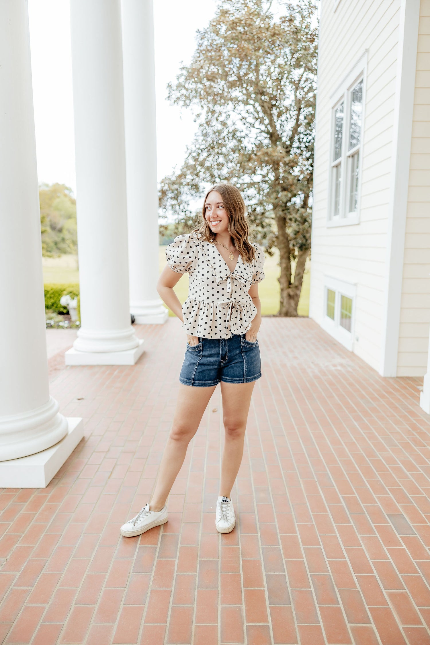 The Hailey shorts are a must-have for any fashion-forward wardrobe. With a high rise and dark wash, these shorts offer a comfortable and stylish fit. Elevate your summer look with these cute and trendy shorts.
