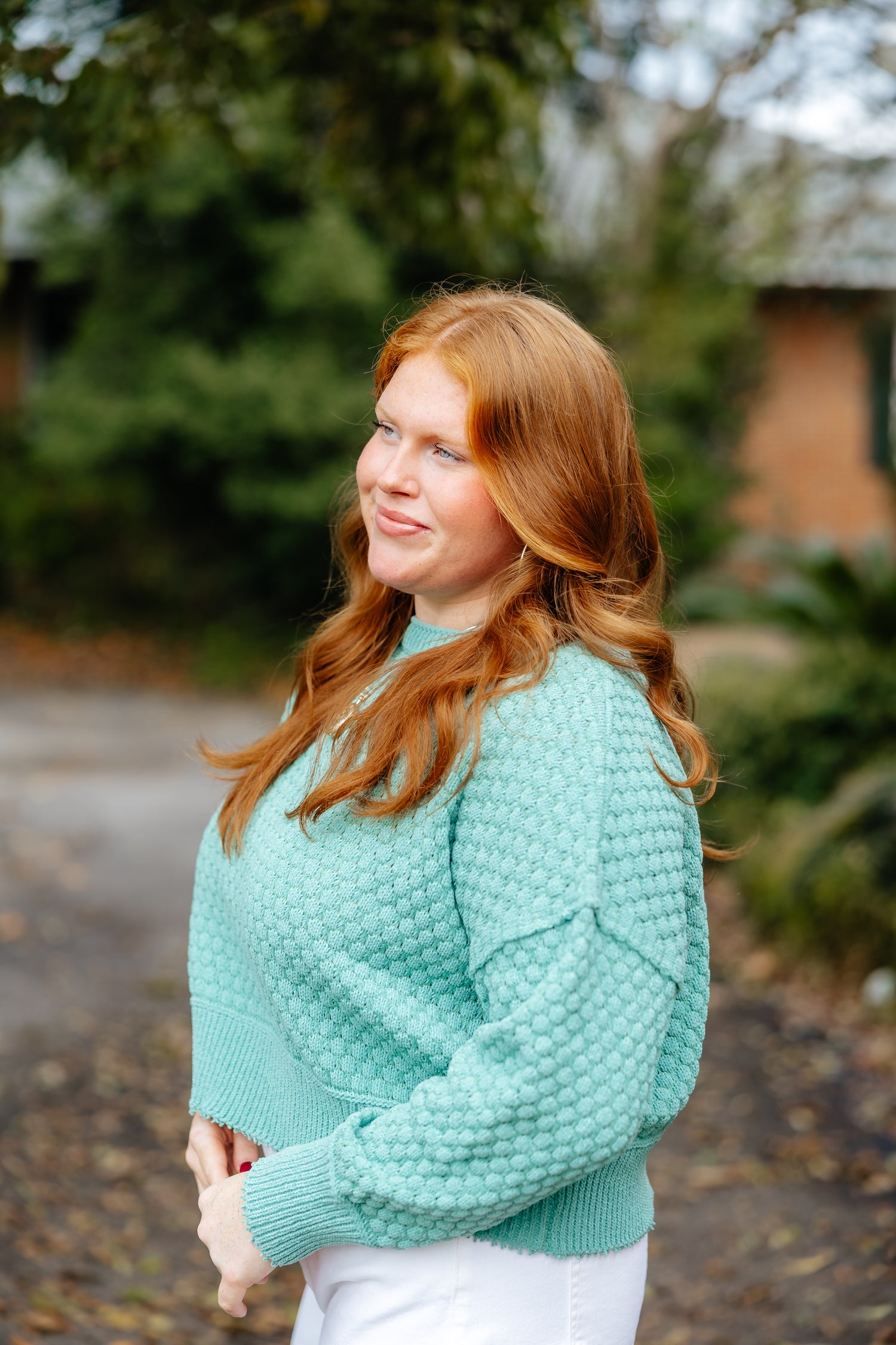 Transform your style with our ellie sweater. Embrace the oversized look and stand out in the beautiful green color. The cuffed sleeve and neckline add a touch of elegance, while keeping you cozy in colder weather. Elevate your wardrobe with this high-quality piece.