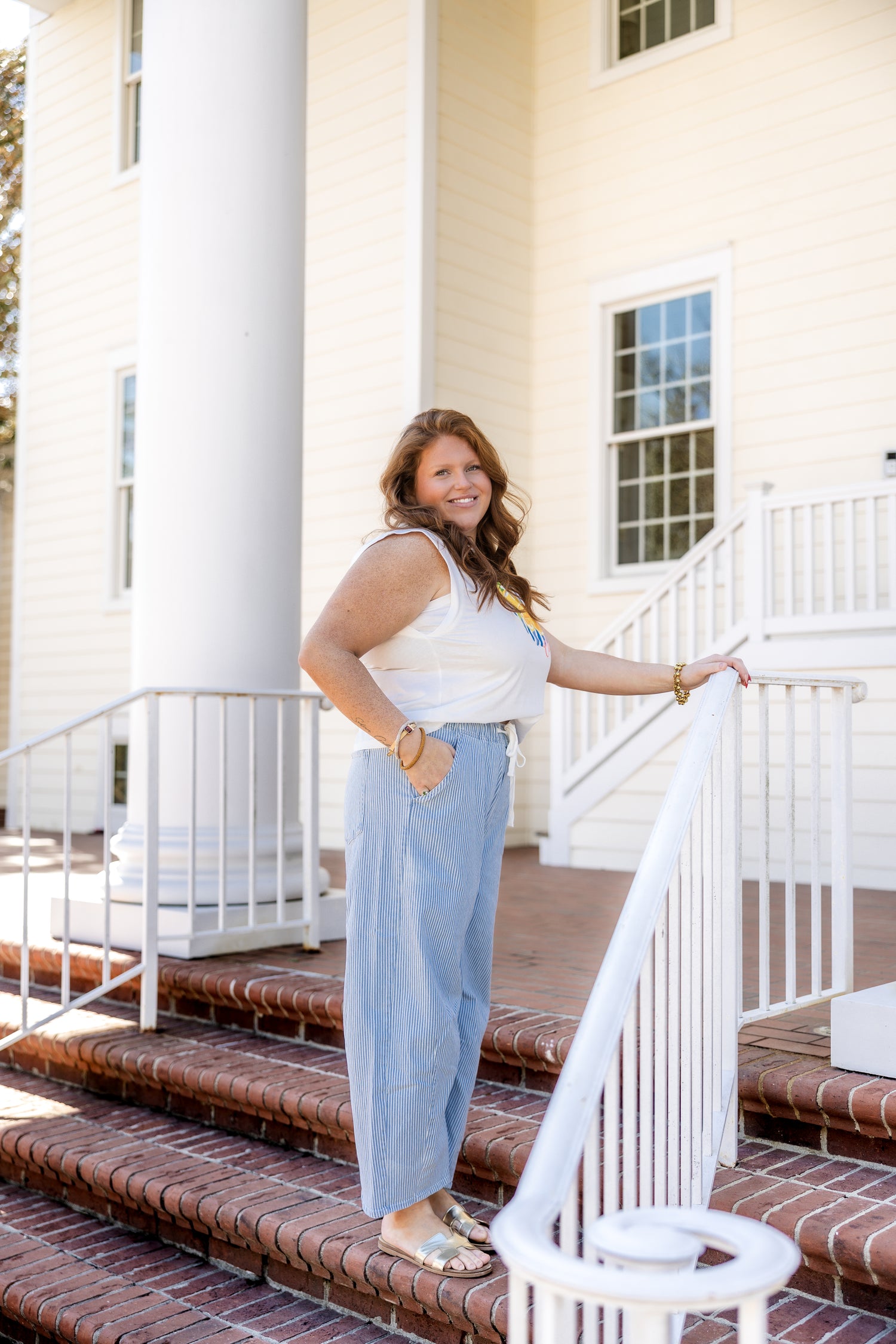 The Meg pants deliver effortless style with a flattering barrel fit that works for any body type. Crisp white stripes add visual interest while the adjustable waistband ensures a personalized fit throughout the day. Crafted from quality materials, these pants prioritize comfort without compromising on sophistication. Perfect for transitioning from office to weekend, the Meg pants are the versatile essential your wardrobe has been waiting for.
