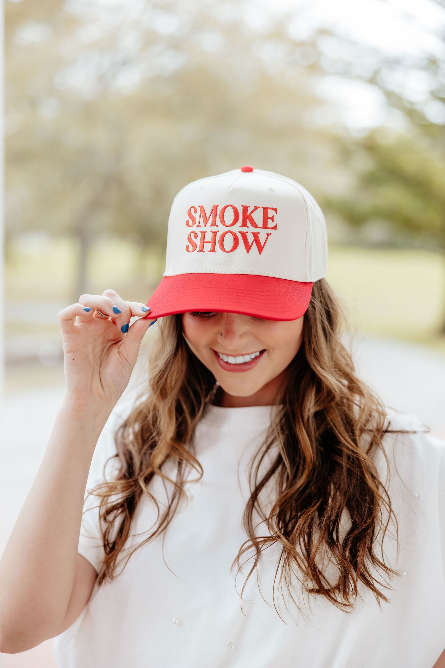 Be a showstopper with the Smoke Show hat. The vibrant embroidered letters make a bold statement, adding a touch of flair to any outfit. Stand out and make a statement with this must-have statement hat.